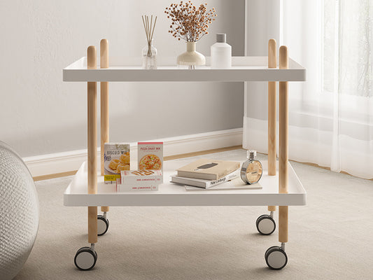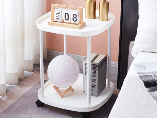 2-Tier Side Table with Wheels-White