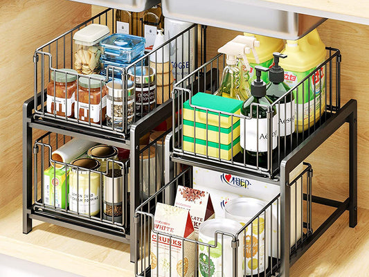 2 Tier Sliding Basket Organizer for Cabinets
