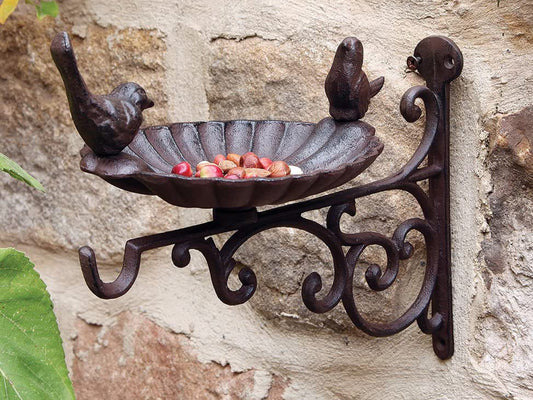 2 Set Cast Iron Bird Bath/Feeder with Wall Bracket