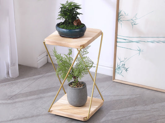 2 in 1 Double Layer Wooden Flower Stands/Side Table-Natural