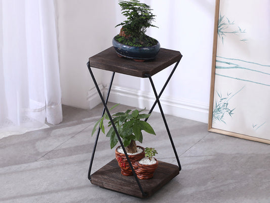 2 in 1 Double Layer Wooden Flower Stands/Side Table-Dark Walnut