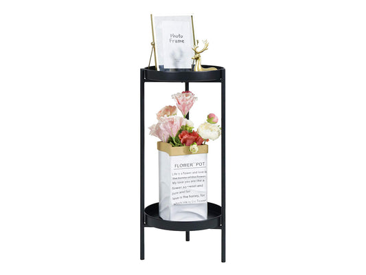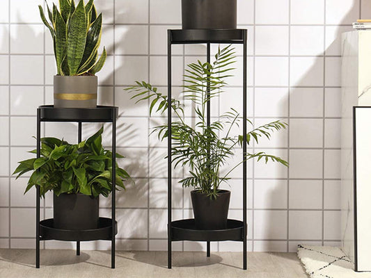 2 Tier Tall Metal Flower Plants Pot Holder-black-M