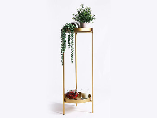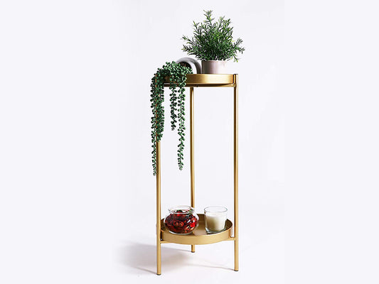 2 Tier Tall Metal Flower Plants Pot Holder-Gold-M