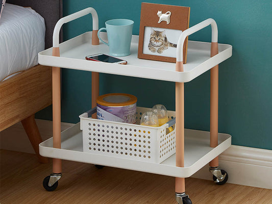 2 Tiers Utility Rolling Cart Multi-Function Storage Rack - White