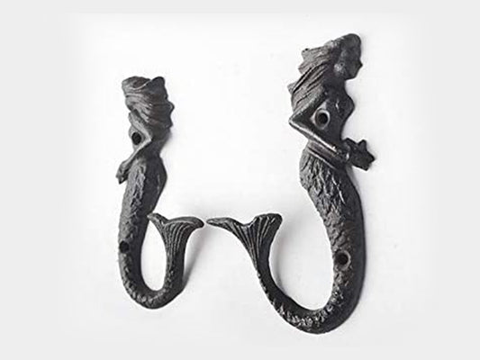 Cast Iron Mermaid Wall Hooks Vintage Rustic Wall Hanger (Set of 2)