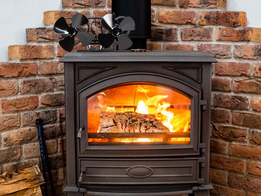 Dual Head 8 Blade Fireplace Fan Heat Powered Stove Fan