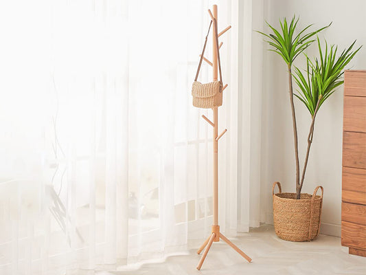 Solid Wood Coat Rack with 8 Hooks - Nature