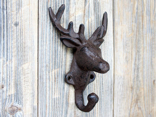 Cast Iron Rustic Deer Head Wall Hook -Set of 2