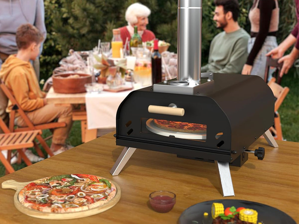 Designed for outdoor portability, the pizza oven features a handle on the back, a removable chimney, and foldable legs, making it easy to carry and the ideal outdoor pizza oven.