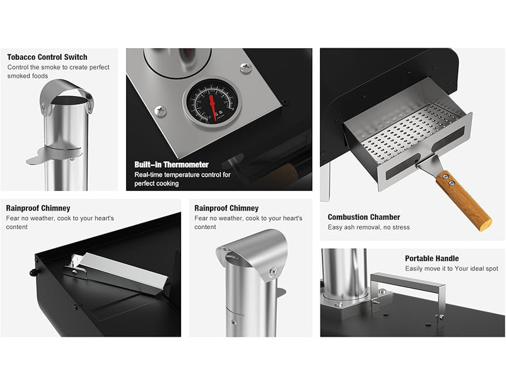 The pizza oven is equipped with a built-in thermometer, along with an oven door and a closable chimney vent, enabling you to accurately control the temperature.