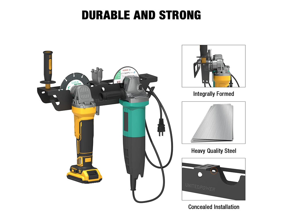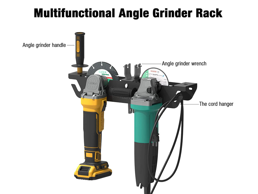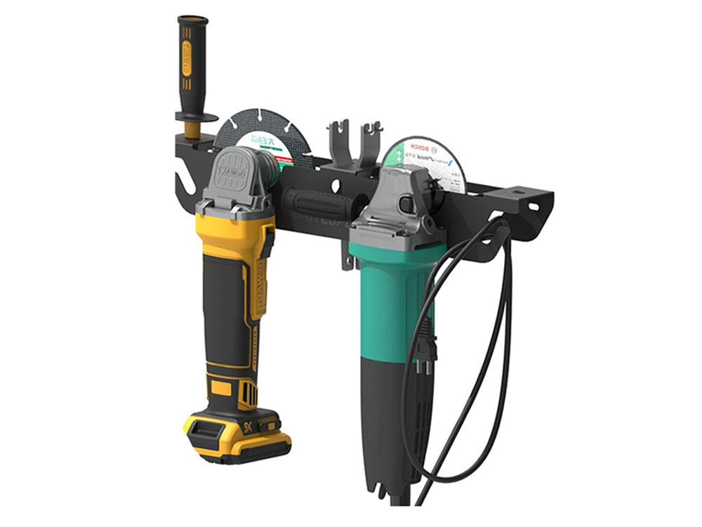 Elevate your workspace with this heavy-duty, wall-mounted angle grinder holder—designed to enhance safety, organization, and convenience in your workshop or garage.