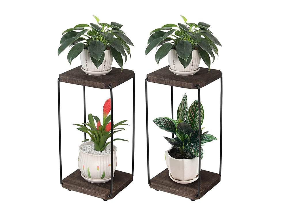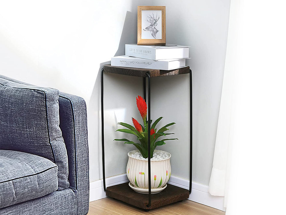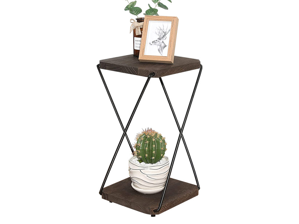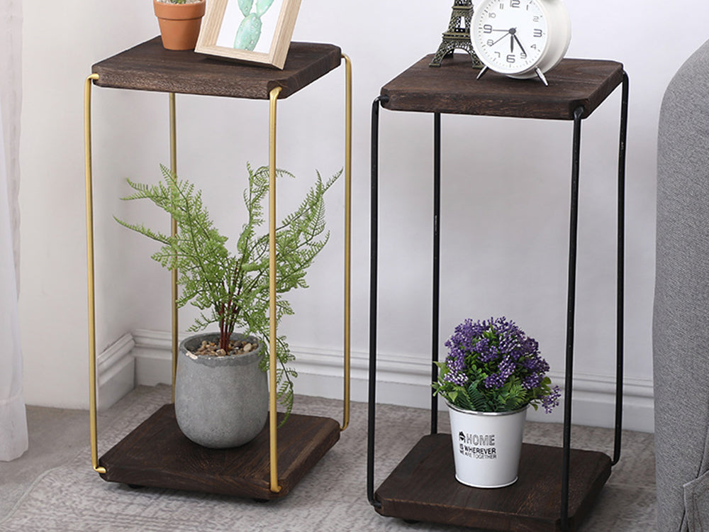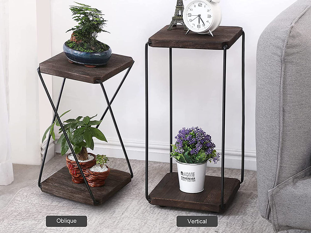2 in 1 Double Layer Wooden Flower Stands/Side Table-Dark Walnut