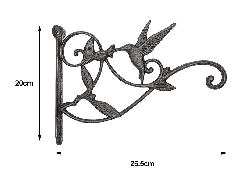 The Faux Rust color and the hummingbird pattern of the bracket create an attractive rustic style garden look. It complements anything that hangs from it, adding elegance and beauty to your home or garden. The curved tip of the bracket securely holds items while adding to the exquisite look.