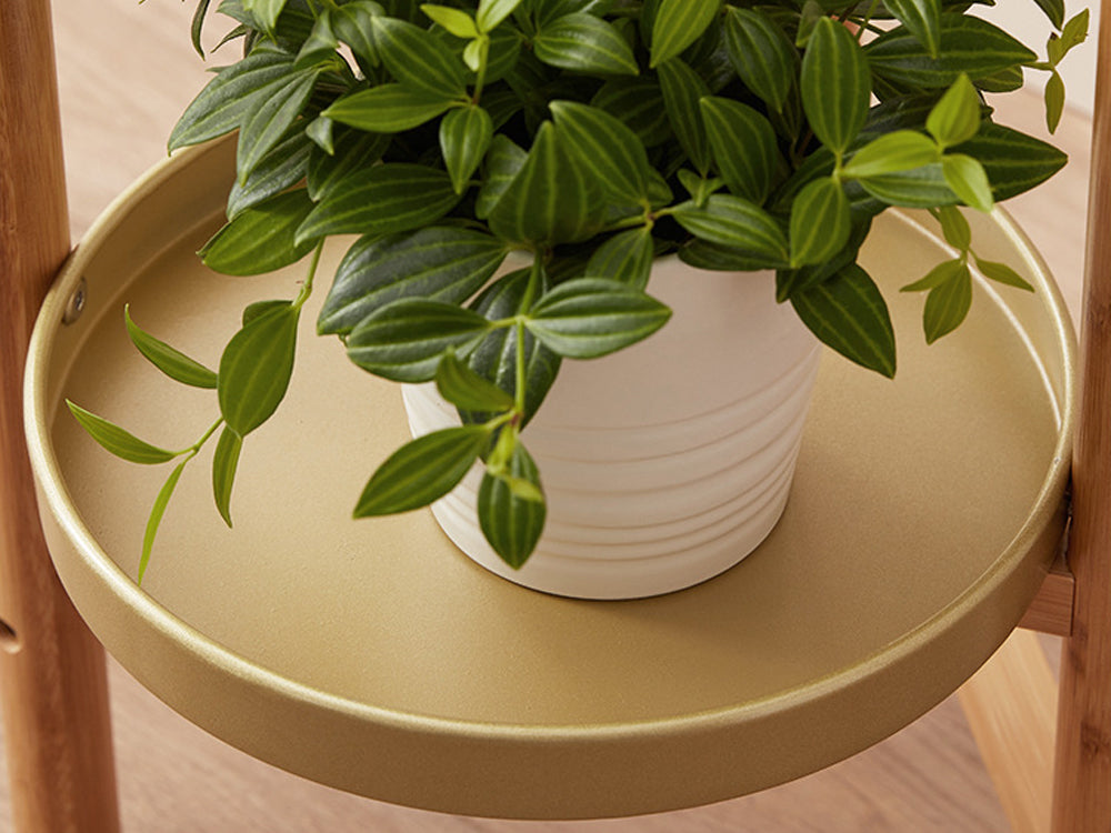 Efficiently use your corner spaces with this high and low shelf design that allows each plant to receive enough sunlight for growth without obstruction. Its simple and elegant style in natural bamboo and steel color makes it perfect for embellishing your home decor.