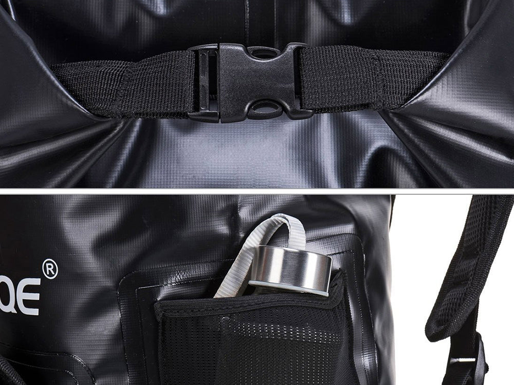 How to Use: Simply align the straps on the top of the backpack after storing your gear, then roll the straps 3-5 times and connect the buckle to complete the seal. Connect the top buckle and stretch the strap to avoid your gear getting wet. Note that the backpack cannot be completely soaked in water for an extended period.