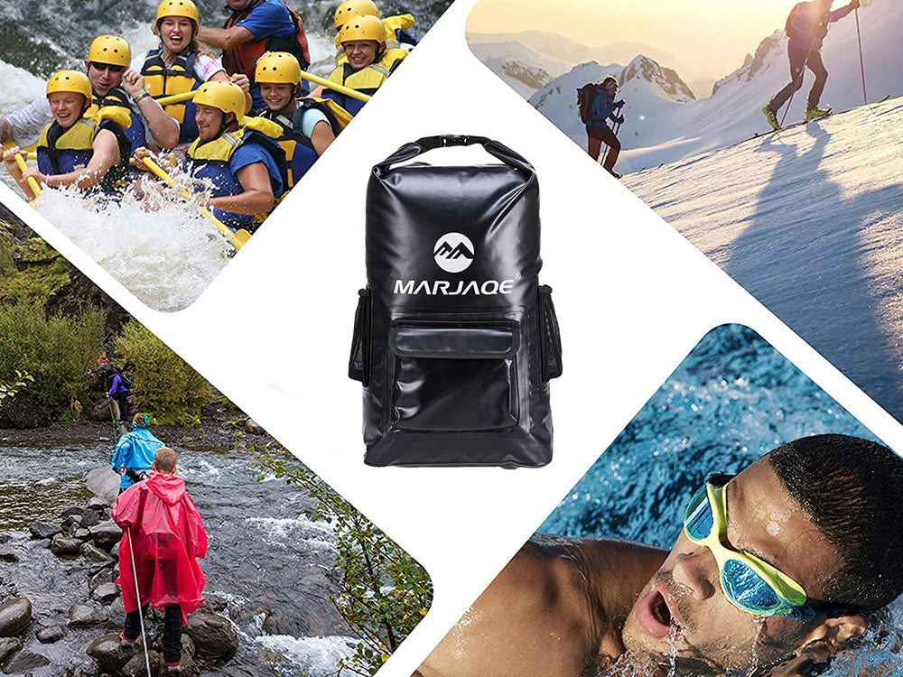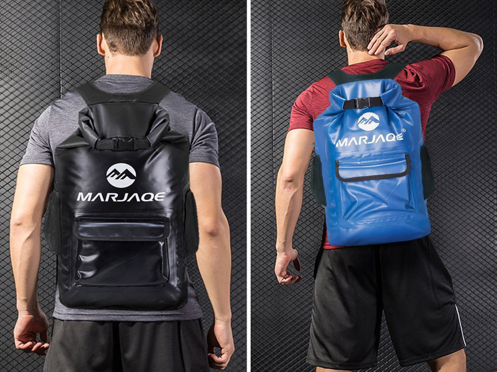 500D Waterproof Material: This 22L dry bag backpack is constructed from heavy-duty 500D PVC material, ensuring that no water can penetrate from the top of the bag and keeping your gear dry during any adventure. With double reinforcement at all major pressure points, this backpack is durable and wear-resistant, making it ideal for tough environments.