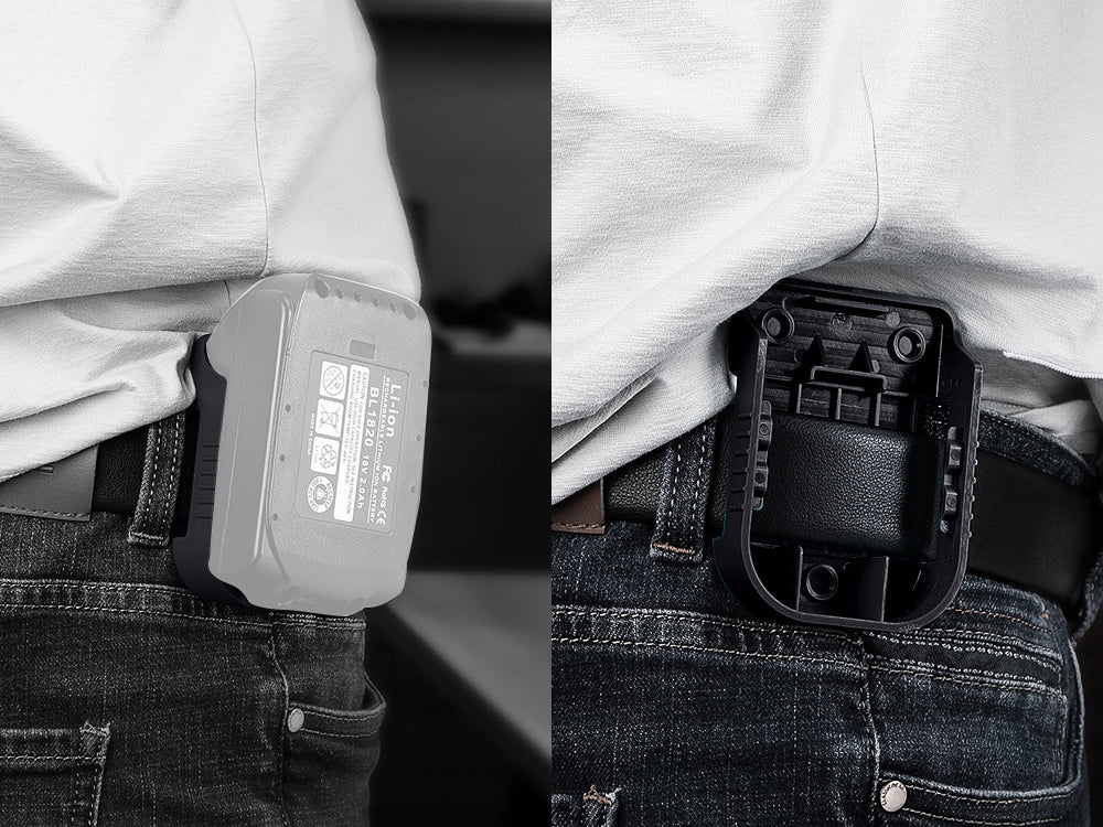 This mount allows for versatile positioning, whether mounted at any angle, upside down, or under a shelf. You can also align multiple mounts in a row to keep your batteries organized, easily identify fully charged ones, and prevent them from getting misplaced.