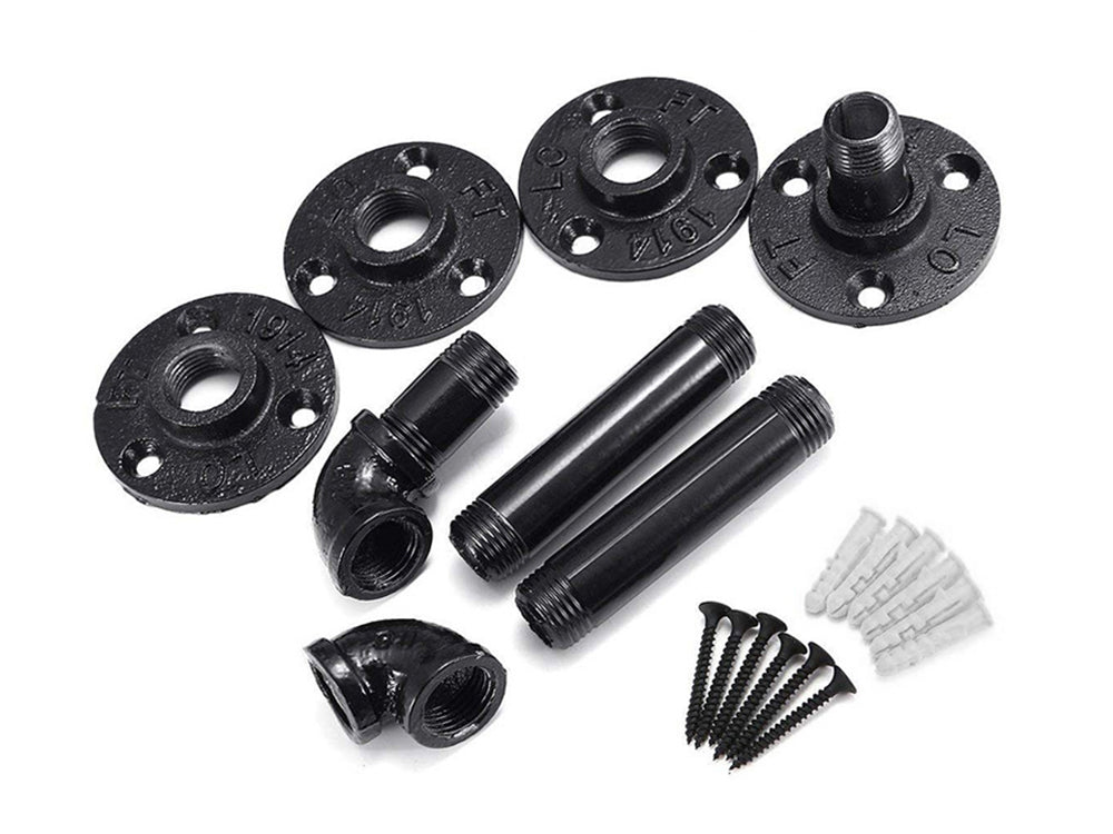Enhance the rustic and industrial charm of your home decor with our set of 6 industrial pipe shelf brackets. Crafted from malleable iron steel and painted black, each shelf bracket can support up to 25KG of weight. These brackets are designed to mix the industrial pipes look with modern decor, creating a unique and functional display for your home.
