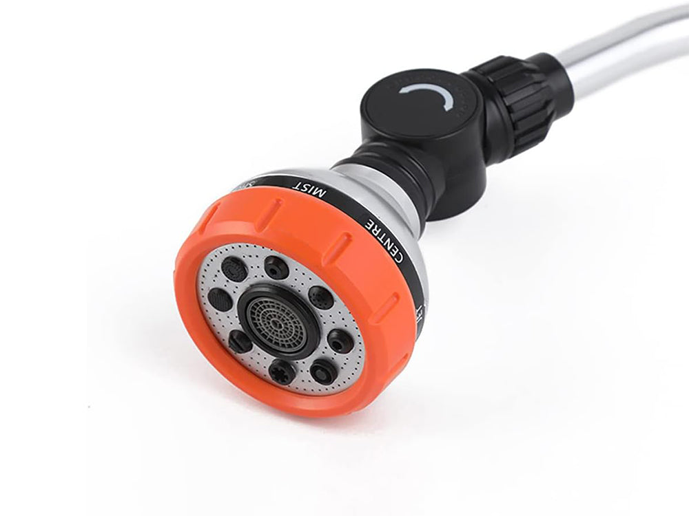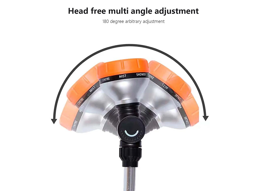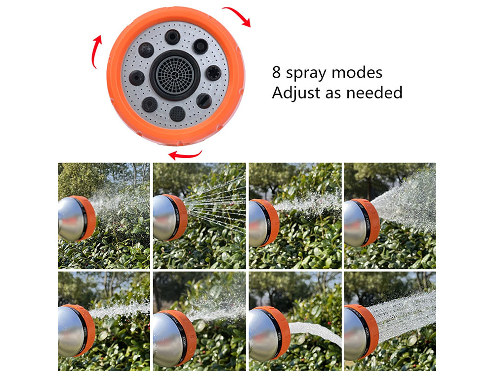 8 Watering Patterns: Rotate the spray head dial to select from Shower, Flat, Full, Mist, Center, Angle, Vertical, and more. Whether you need a high-pressure water column to clean windows, an angled spray to wash your car, a gentle shower for shrubs, or a soft mist for hanging baskets, these 8 patterns cover all your needs.