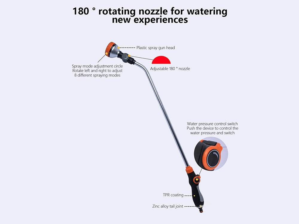 180° Adjustable Nozzle: Unlike older models, the upgraded nozzle allows for a 180-degree adjustable spraying angle, making it more suitable for watering in various scenarios.