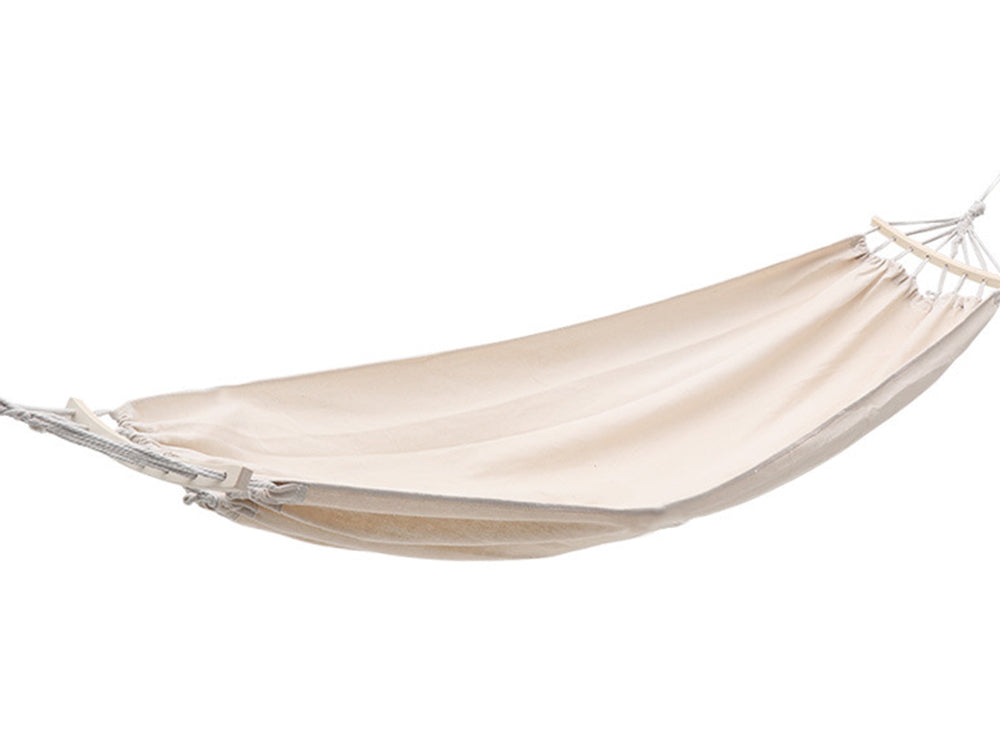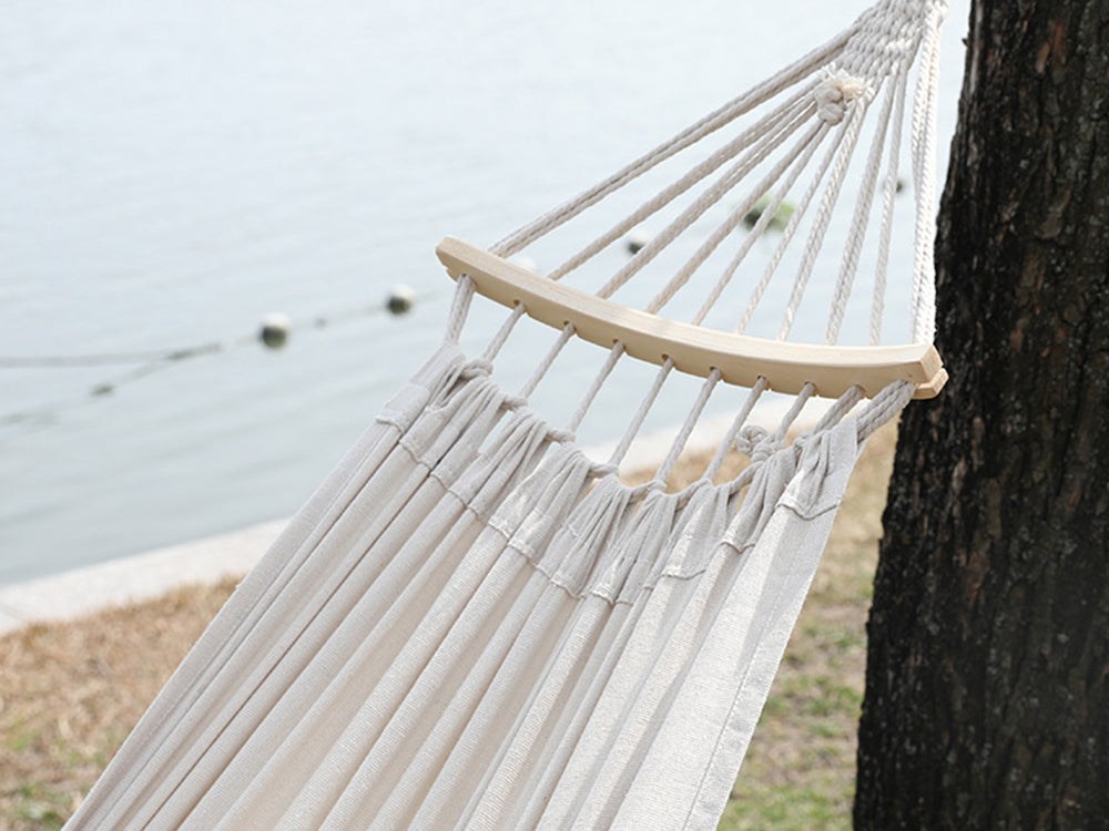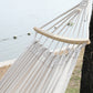 Crafted from durable cotton canvas, this hammock measures 150 x 190cm, providing ample space for two people to relax comfortably. The anti-rollover design features balance spreader bars with uniform hole spacing that effectively tightens the hammock, ensuring it remains balanced and comfortable.