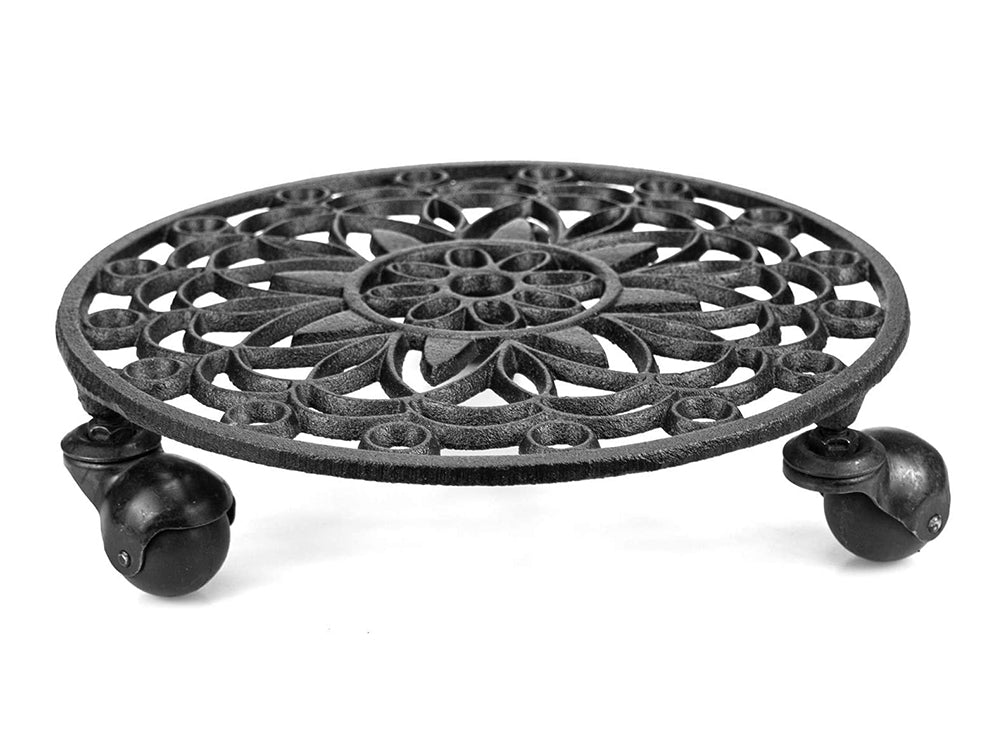 Powerful Capacity: This plant stand features three durable rolling wheels and a sturdy cast iron structure that can easily carry up to 150kg of weight.
