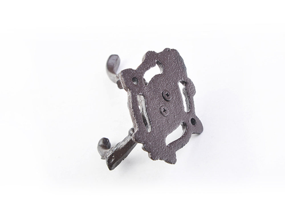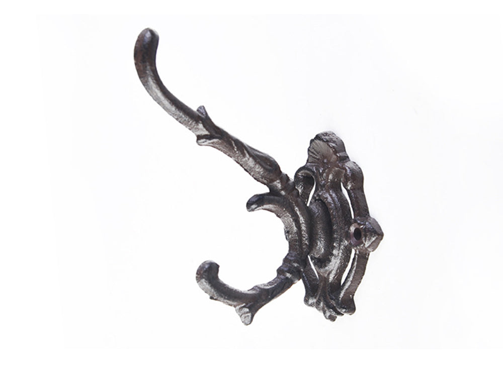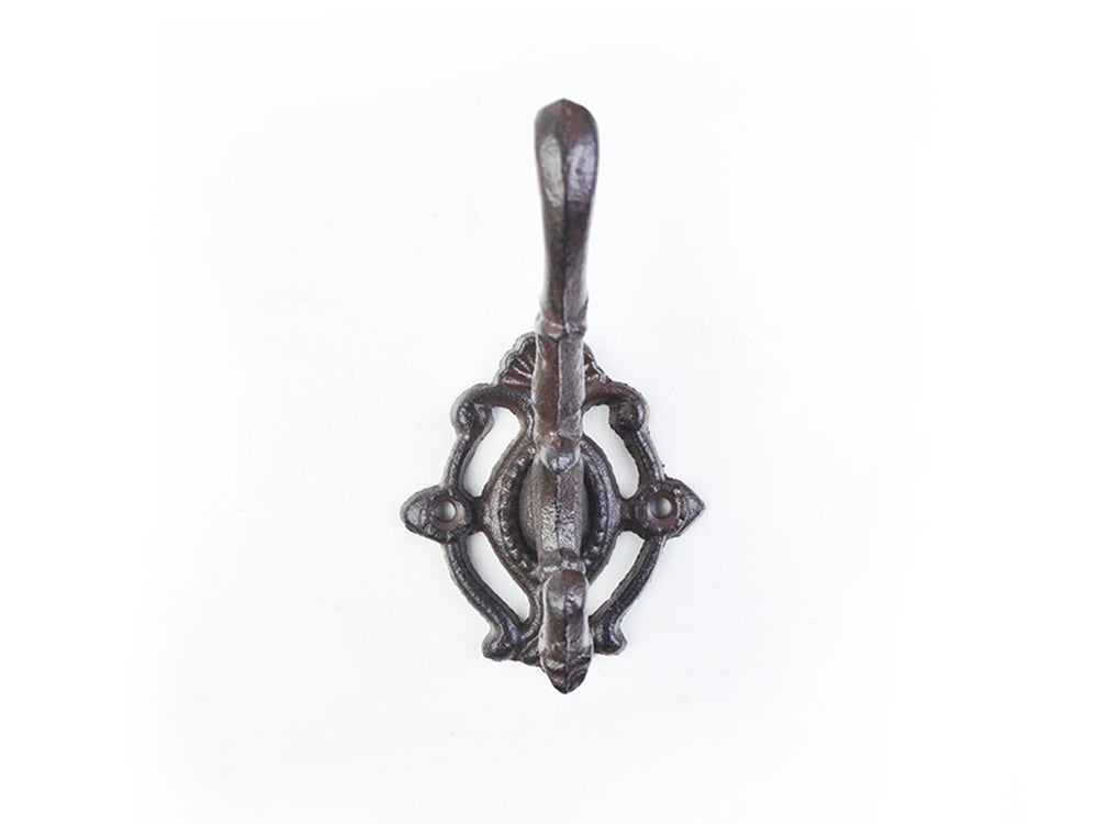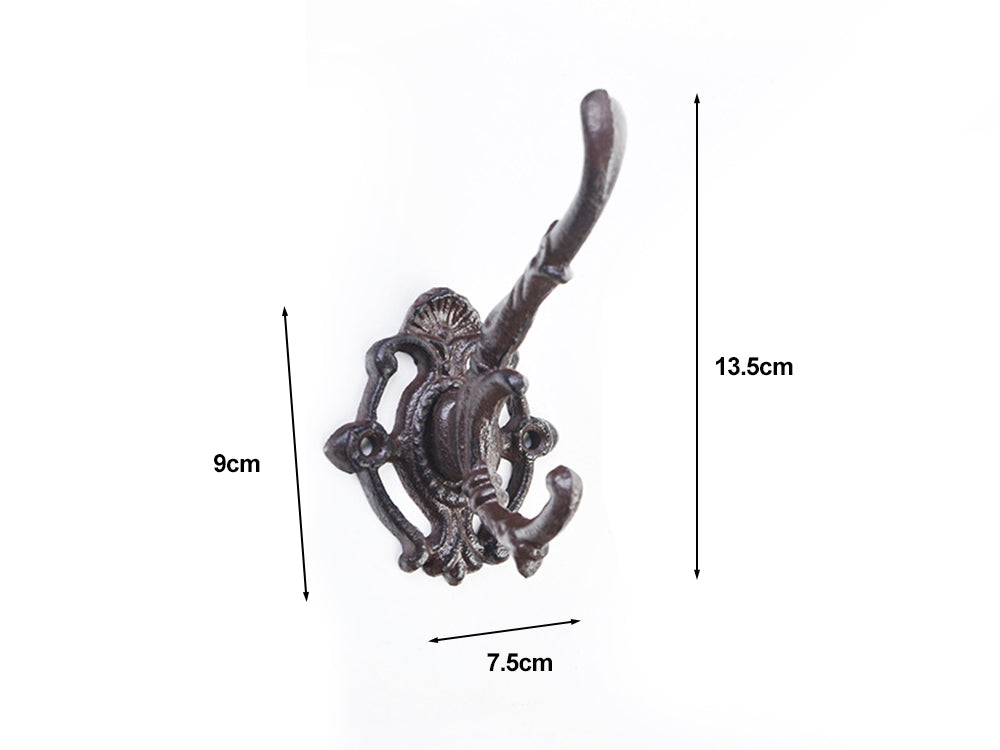 Upgrade your home decor with these heavy and sturdy cast iron wall hooks. With pre-drilled holes for easy mounting, they can be used indoors or outdoors and stand up to the elements. The dark brown patina and vintage-inspired design make these hooks perfect for adding shabby chic charm to any farmhouse, barnhouse, or schoolhouse decor.
