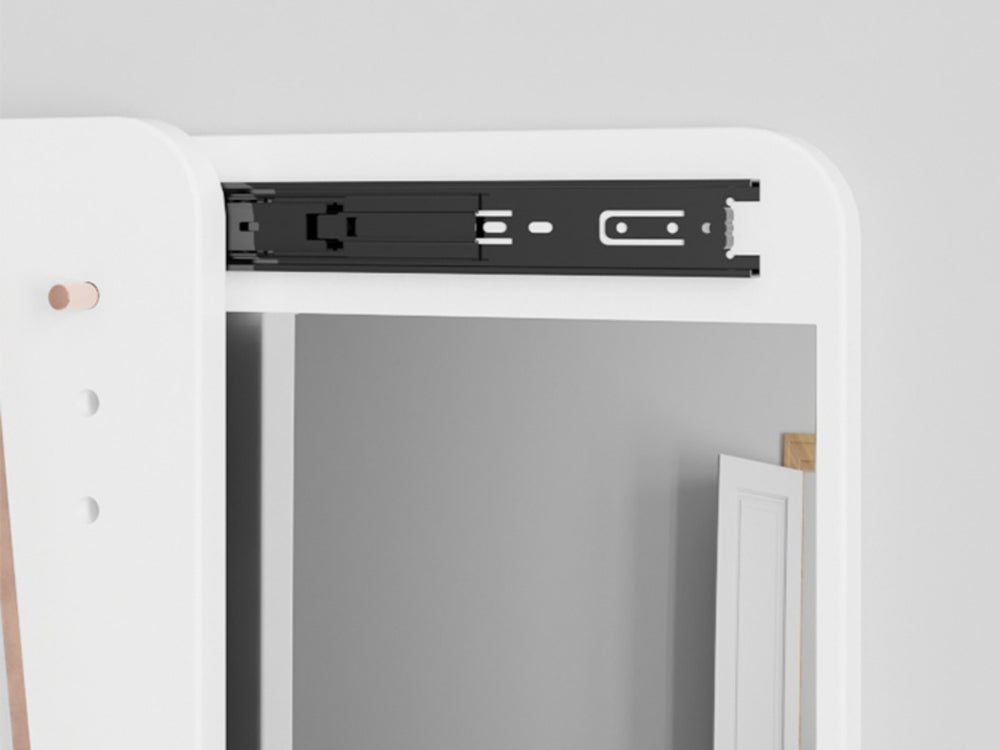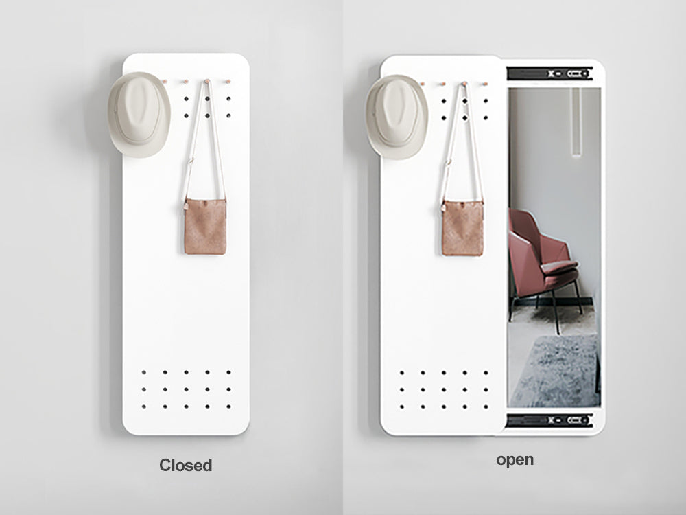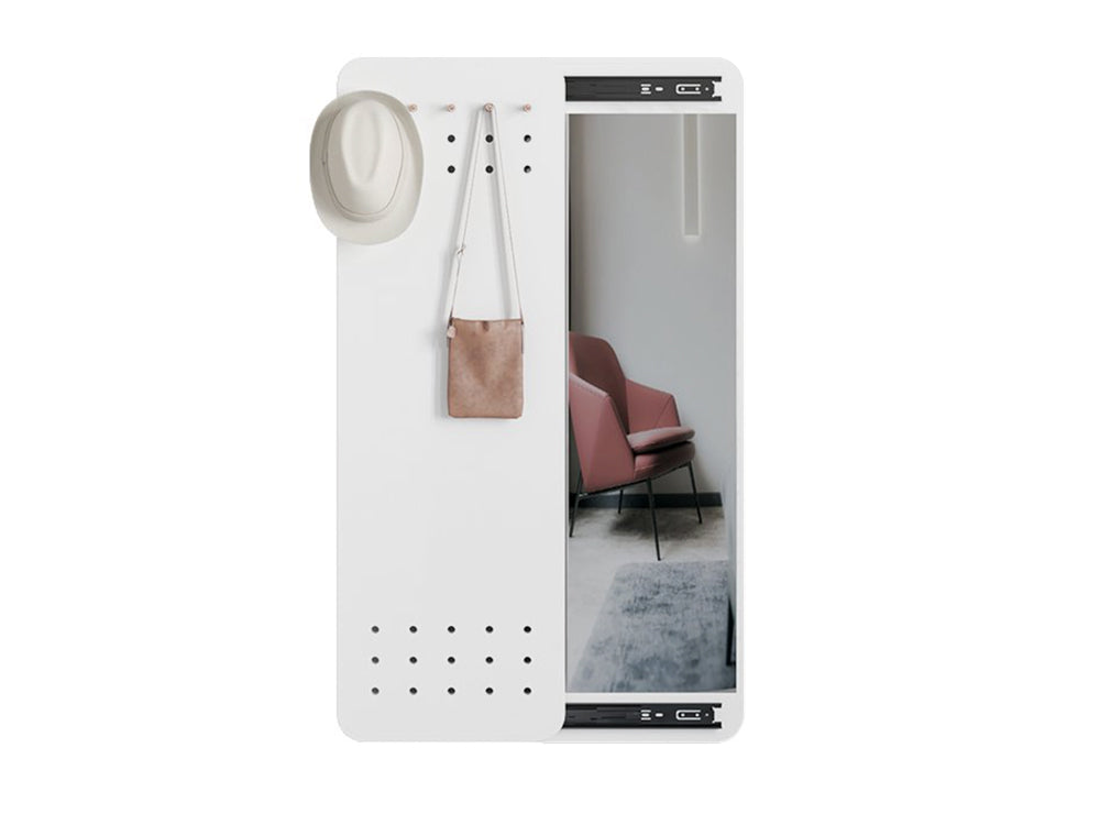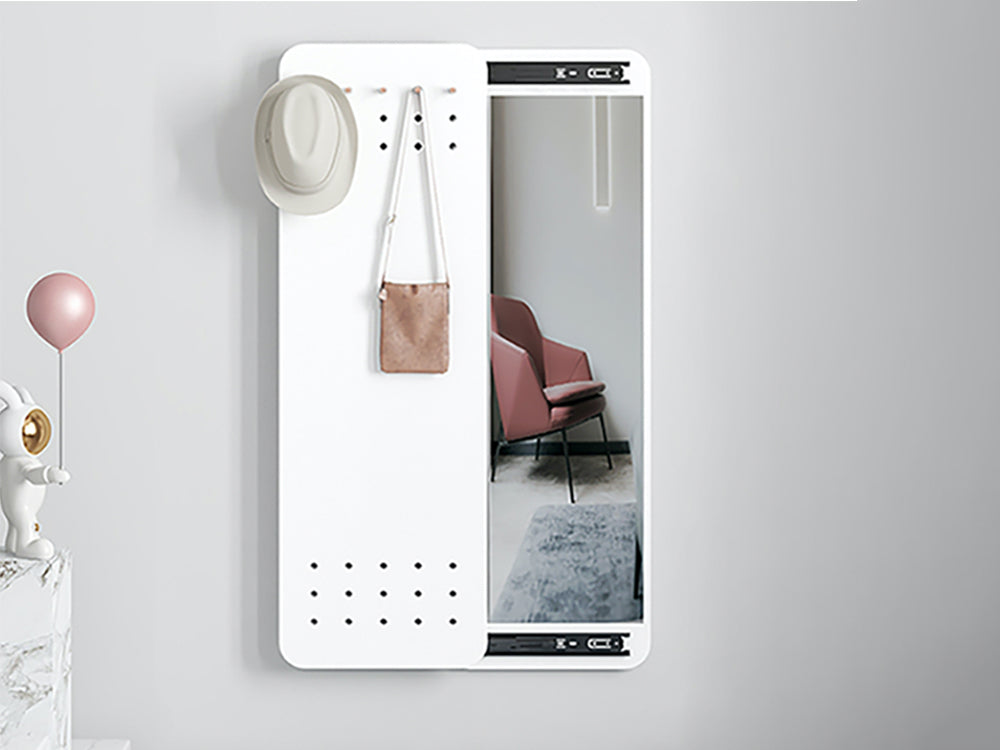 The sliding peg board is a practical feature that allows you to conveniently hang and store daily necessities such as clothes, bags, hats, scarves, keys, or small decorative items. When closed, it acts as a protective door for the mirror, providing an extra layer of safety. This feature ensures that your mirror is shielded from potential accidents caused by pets or children's toys.