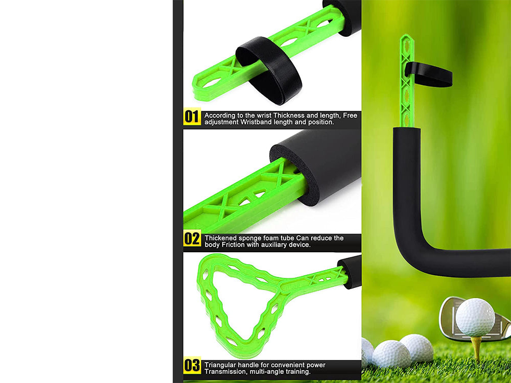 Golf Swing Angle Aid: As a beginner, one of the most common problems in golf is not being able to maintain the correct wrist angle when swinging. The Golf Swing Angle Aid is designed to help correct this issue by making the arm and club form a correct angle, allowing for the movement track of the ball arm to remain on one plane, resulting in effective hitting.