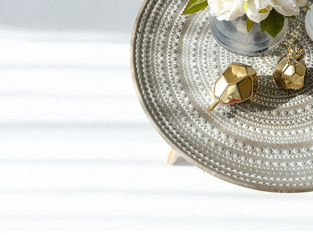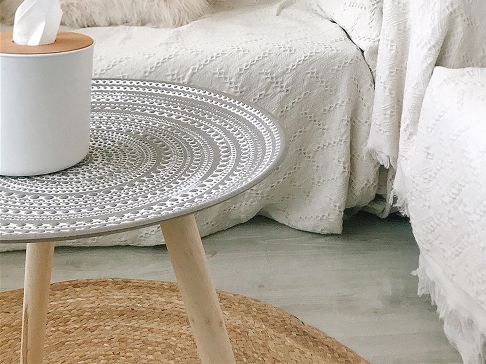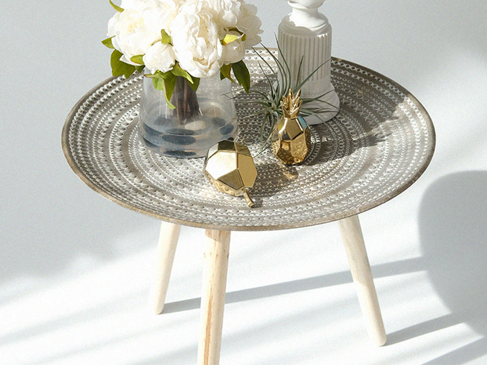 Exotic Moroccan Style: This round side table adds a touch of exotic elegance to any room with its beautifully carved pattern inspired by Nordic and Moroccan styles.