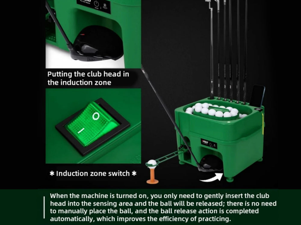 Effortlessly dispenses a ball onto the tee or mat when the club head enters the sensor area, streamlining practice sessions.