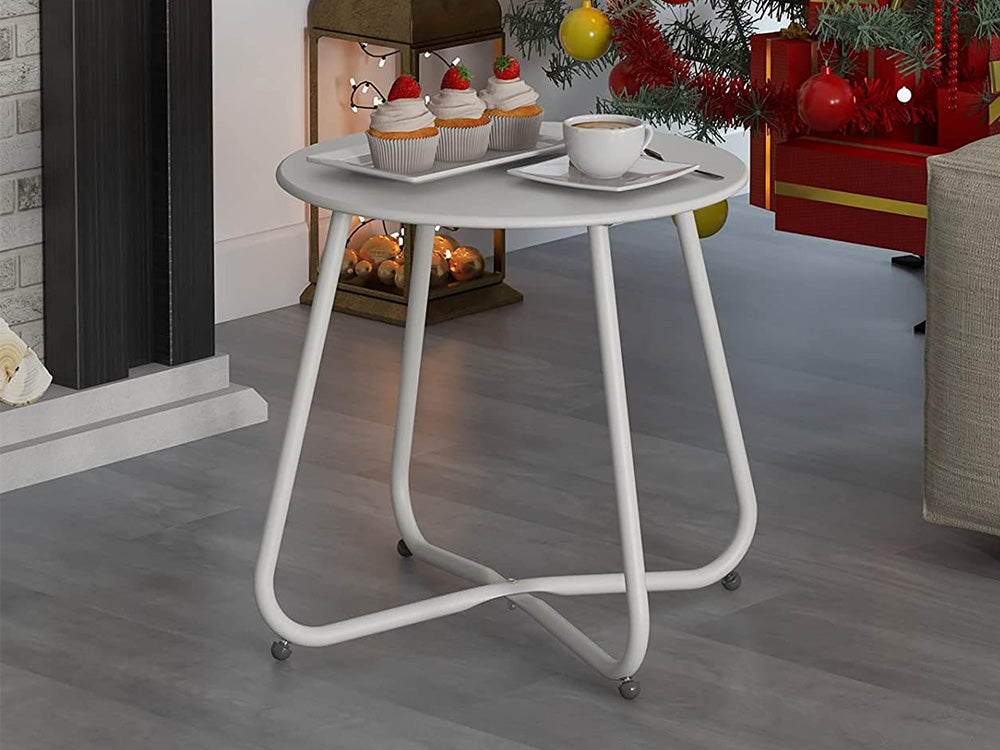Round Metal Side Table-White