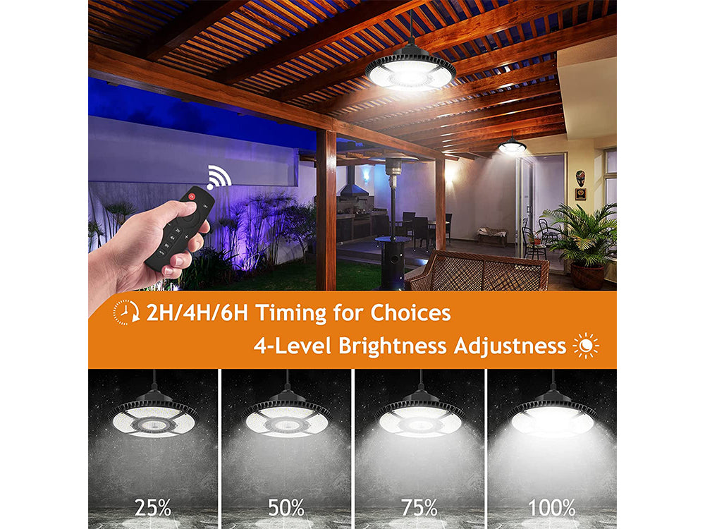 Equipped with 136 powerful LED beads and adjustable angles, the shed light can make a large range of illumination. You can also adjust the brightness of the lamp through remote control, with four different brightness settings available: 25%, 50%, 75%, and 100%.